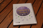 دفتر موضوعی سیمی که جلد سخته. ۲ تا طرح داره؛ دفتر شیمی و زیست.